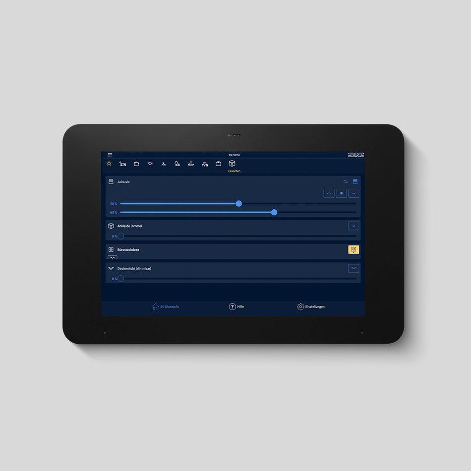 Das runderneuerte SV-Control wurde optisch an SV-Home angepasst. Dies gewährleistet eine komfortablere Inbetriebnahme, da das gesamte System einheitlicher zu bedienen ist. Standardvorlagen erleichtern die Inbetriebnahme. Die Einrichtung ist einfacher, da die Vorlagen unnötige Klicks ersparen. So sind Standardbenutzer wie Admin oder Gast mit einem Klick angelegt. Zudem können gleiche Räume oder Funktionen im Folgeupdate kopiert werden. Systemintegratoren müssen nicht mehr jeden Raum separat anlegen und mit Funktionen versehen.