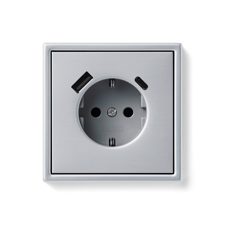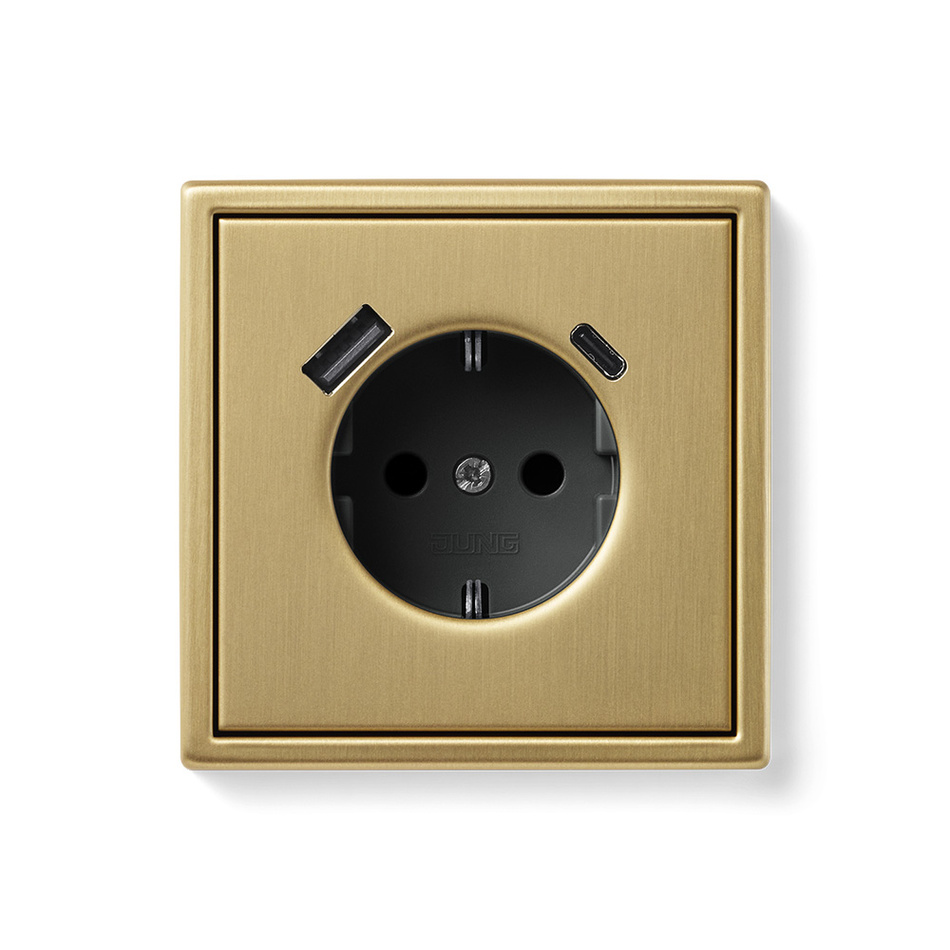 Neben Kunststoff bietet das Unternehmen JUNG die Steckdosen nun auch aus Aluminium, Edelstahl sowie in Dark, Anthrazit (jeweils lackiertes Aluminium), Messing Antik und Messing Classic an. Die Varianten der SCHUKO® Steckdosen mit USB-Anschlüssen ermöglichen ein durchgängig harmonisches Interior-Design mit Echtmetall. Geräte sind mit den USB-Anschlüssen Typ A oder Typ C erhältlich. Diese Variante mit JUNG Quick Charge® stellt eine elektrische Leistung von 18 Watt bereit und lädt Mobilgeräte in kürzester Zeit wieder auf. Neben der Variante mit einem einzelnen USB-Port bieten wir auch eine SCHUKO® Steckdose mit zwei USB-Anschlüssen (Typ A und Typ C) an. Sind mehrere Verbraucher angeschlossen, teilt sich der Ladestrom von 3 Ampere (15 Watt) gleichmäßig auf 1,5 Ampere pro USB-Buchse auf – die optimale 3-1-Lösung. Wie alle JUNG SCHUKO® Steckdosen sind natürlich auch sie „Made in Germany“, vom VDE zertifiziert und sicher dank „Safety Plus“. Mit der Weiterentwicklung der USB-Steckdosen geht JUNG einen weiteren, konsequenten Schritt.