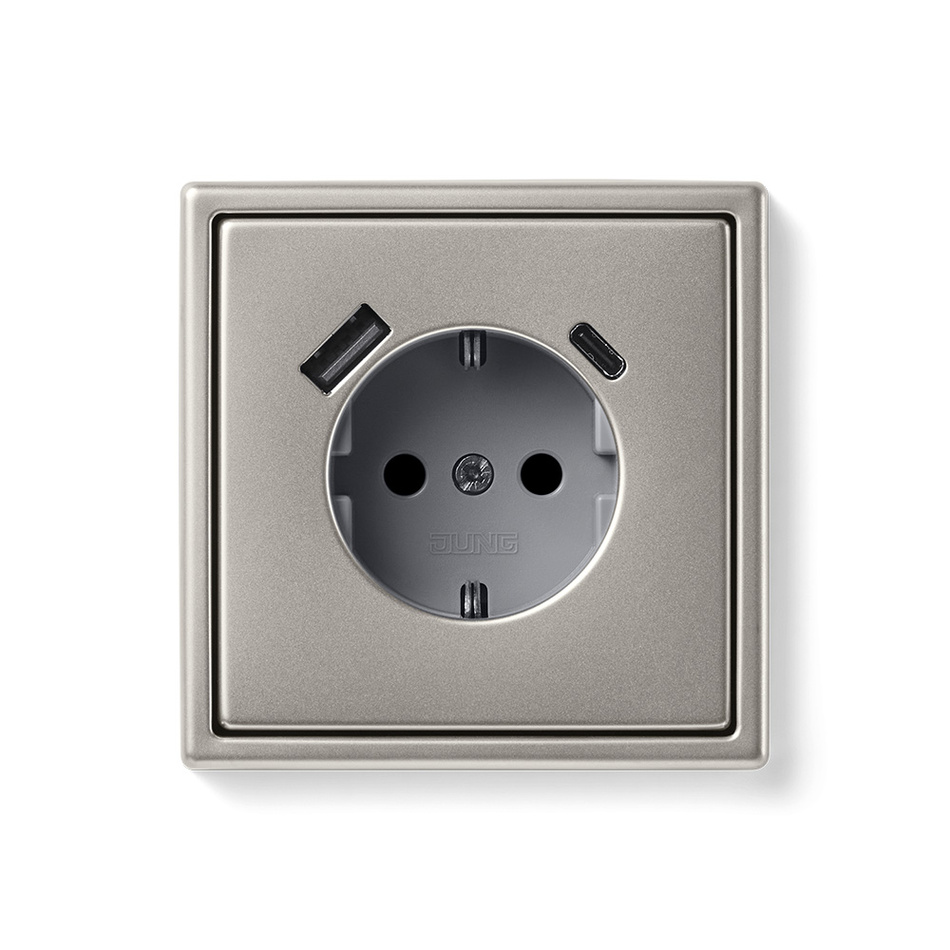 Die JUNG SCHUKO® Steckdosen mit USB-Anschlüssen und JUNG Quick Charge® sind ab sofort in dem Programm LS 990 in Metallausführungen verfügbar.