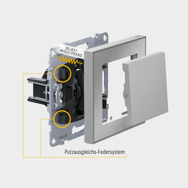 • 3 Farben für die Abdeckungen: Die Abdeckungen, wie z. B. Wippen und Steckdosenfrontblenden, sind in 3 verschiedenen Farben erhältlich: White, Sand und Black. Die satinierte Oberfläche sorgt für ein angenehmes Bediengefühl.