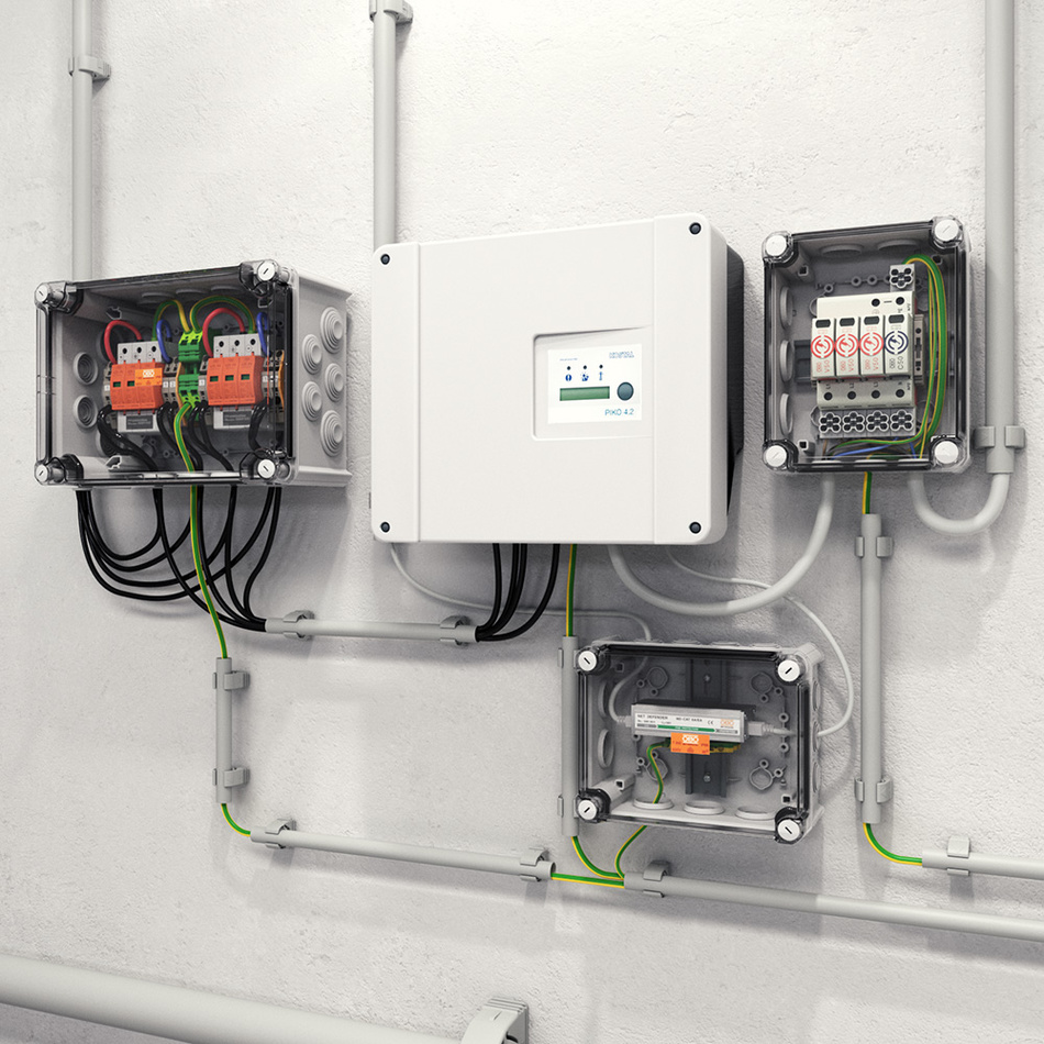 Das isCon®-System ist nicht die einzige Lösung für eine sichere PV-Anlage aus dem OBO-Portfolio. OBO bietet für den Schutz von Photovoltaikanlagen ein komplettes System an, das nahezu alle elektrotechnischen Anforderungen abdeckt. Dazu zählen auch Generatoranschlusskästen mit Blitz- und Überspannungsschutz für PV-Anlagen. Erhältlich sind die Generatoranschlusskästen für bis zu drei Maximum Power Point Tracker (MPPT), ebenso sind Versionen für bis zu vier Strings je MPPT verfügbar. Der Anschluss der Leitungen erfolgt über Klemmen mit Push-In Technologie. Die robusten Gehäuse der Anschlusskästen sind aus wärmeformbeständigem Polycarbonat gefertigt. Mit dem transparenten Deckel haben Besitzer und Betreiber ihre PV-Anlage immer sicher im Blick.