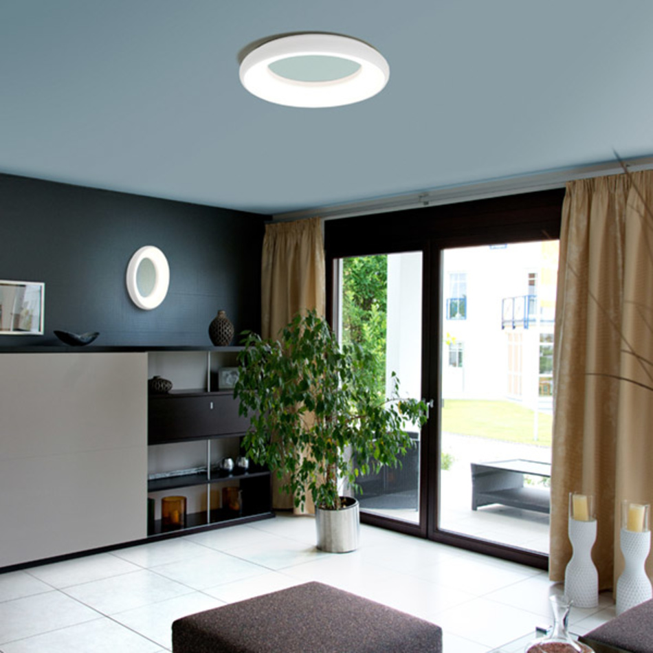 Die runden, quadratischen und ringförmigen Innenleuchten sind jeweils in diversen Baugrößen und Lichtleistungen erhältlich. Zwei Lichtfarben ermöglichen es, verschiedenen Anforderungen in Innenräumen gerecht zu werden. Für den Einsatz in öffentlichen Wohnbereichen wie Fluren und Treppenhäusern oder in Krankenhäusern, Schulen und Kindergärten empfehlen sich die Ausführungen mit 4.000 K. Im privaten Wohnbereich dagegen sorgen die Versionen mit 3.000 K für eine behagliche Atmosphäre.