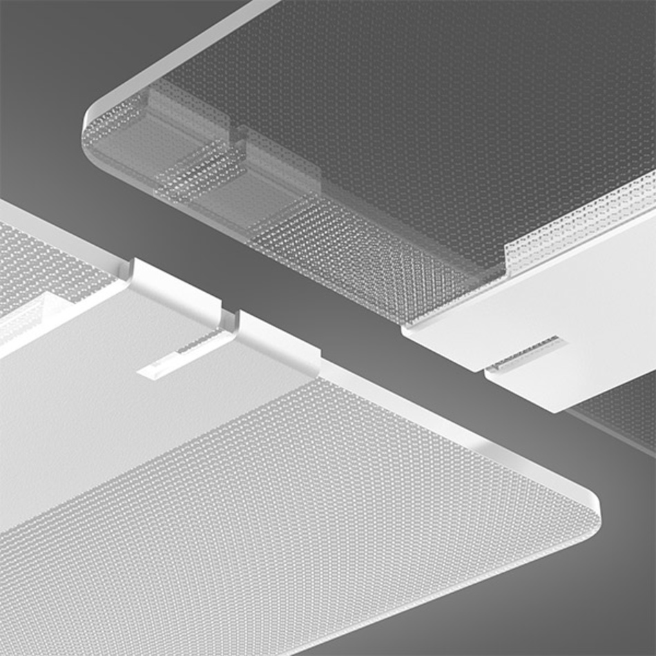 Dank der „TWINDOT Lichttechnologie“ gelingt die Transformation: die innovative Mikroprismatik verwandelt die Totalreflektion der Lichtwellen im transparenten Kunststoff (PMMA) zu magischem Licht. Der Raum erstrahlt rundum in angenehm sanftem Licht mit weichen Schatten und blendfreiem Licht für Sehen und Arbeiten. Sanfte Lichtpoesie wird hier zum sinnlichen Erlebnis.